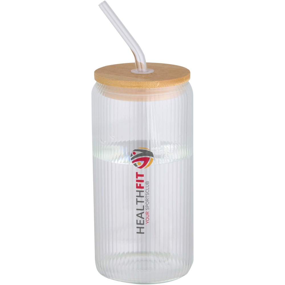 Boroszilikát üvegből készült pohár szívószállal és bambusz fedéllel. Az edény különlegessége a belső bordázott kialakítás, miközben a külső felülete sima, így kiválóan alkalmas emblémázásra. A gyártáshoz felhasznált bambusz fenntartható forrásból származik, szem előtt tartva a környezeti és társadalmi felelősségvállalást. A terméket újrahasznosított kartonból készült ajándékdobozban szállítjuk. Űrtartalom: 650 ml.