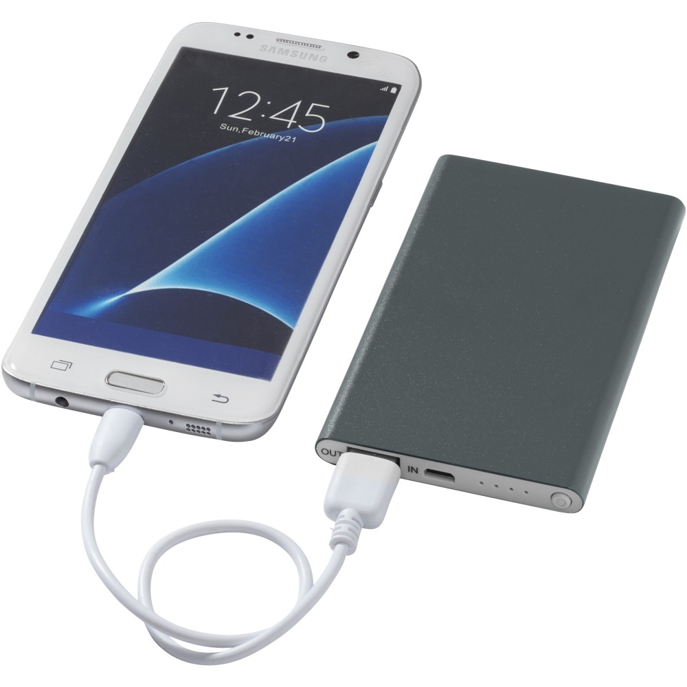 Powerbank 4000 mAh teljesítménnyel. Veszélyes áru, csomagban nem küldhető. Emblémázás: Gravírozás, Tamponnyomás, UV nyomtatás