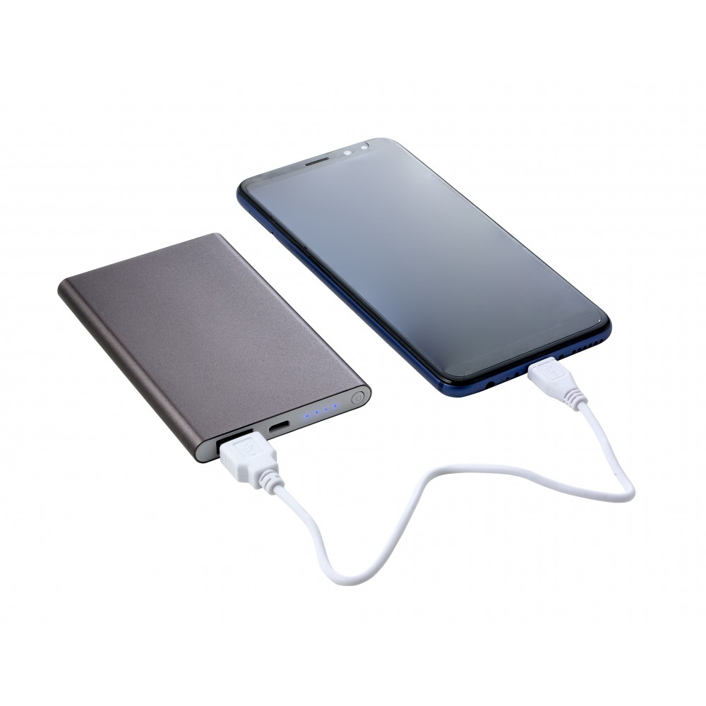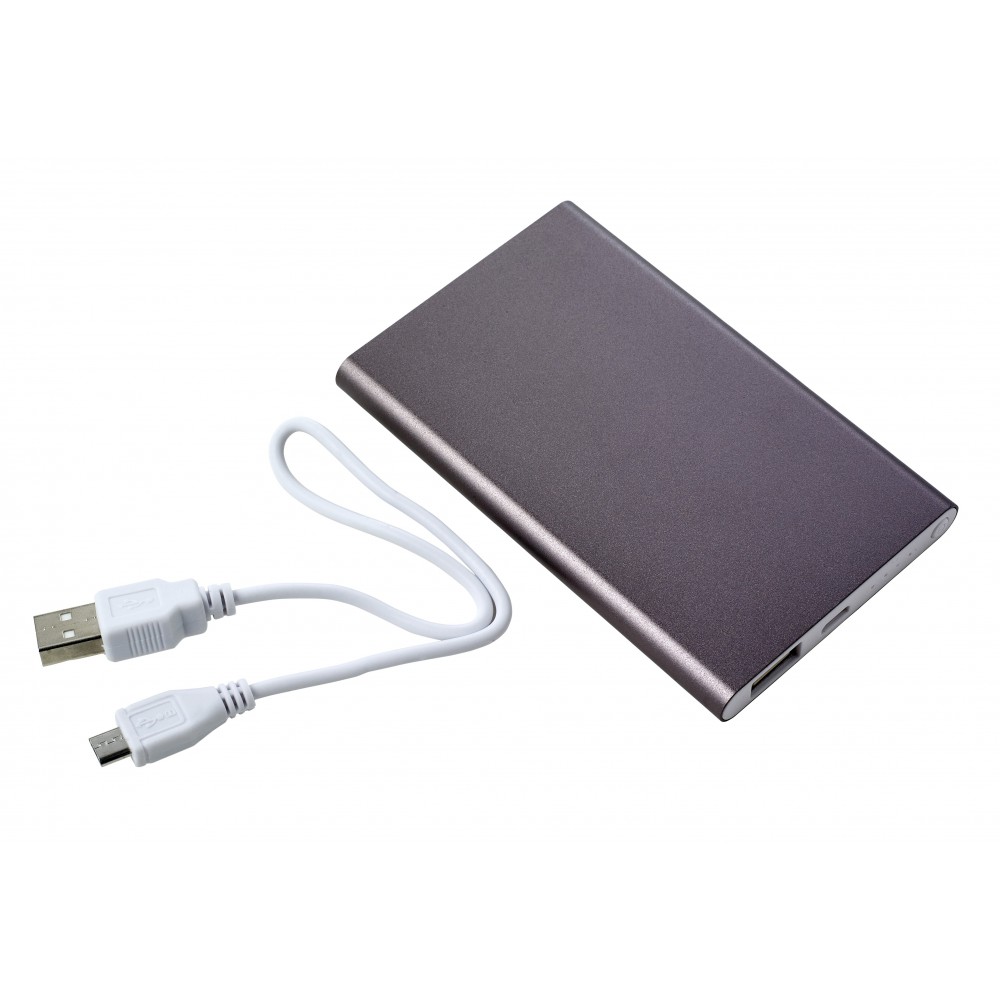 Powerbank 4000mAh kapacitással, töltöttségi szintet jelző fénnyel. A legtöbb eszközzel kompatibilis. Alumínium. Veszélyes áru, csomagban nem küldhető. Emblémázás: Gravírozás, Tamponnyomás, UV nyomtatás