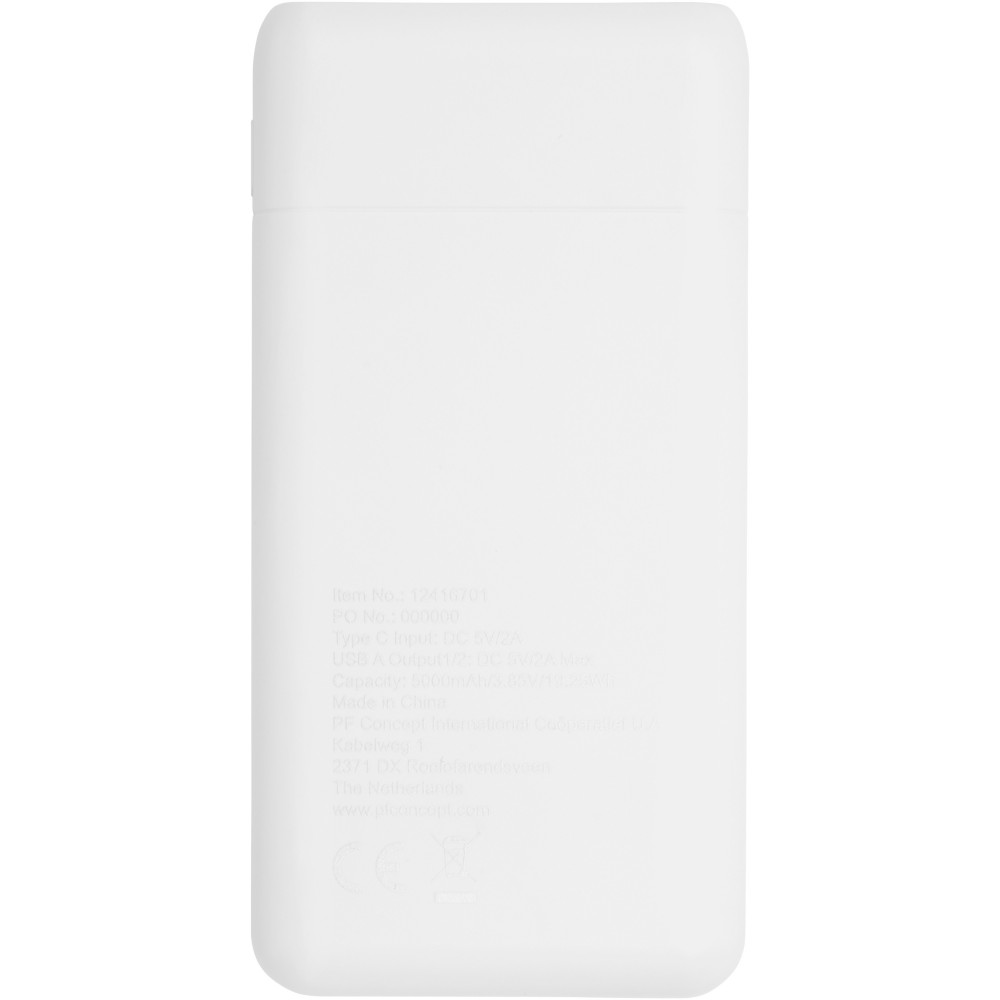 5000 mAh-s powerbank. Type-C bemenet (5V / 2a) és kettős USB-A kimenet (5V / 2a). A LED-jelzőfény töltés közben kigyullad, és megjeleníti az akkumulátor töltöttségi fokát. Tartalmazza a PVC-mentes TPE műanyag töltőkábelt. Csomagolása Avenue díszdoboz. Emblémázás: Tamponnyomás, UV nyomtatás