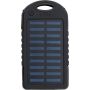 Gumírozott ABS napelemes powerbank zöld jelzőfénnyel és oldalsó elemlámpával. Két USB és egy USB-C porttal. Napelemes töltés: 5V/200mA. Input DC 5V/1A. Output DC 5V/2x1A. Kapacitás: 4.000mAh. USB kábellel. Emblémázás: Tamponnyomás