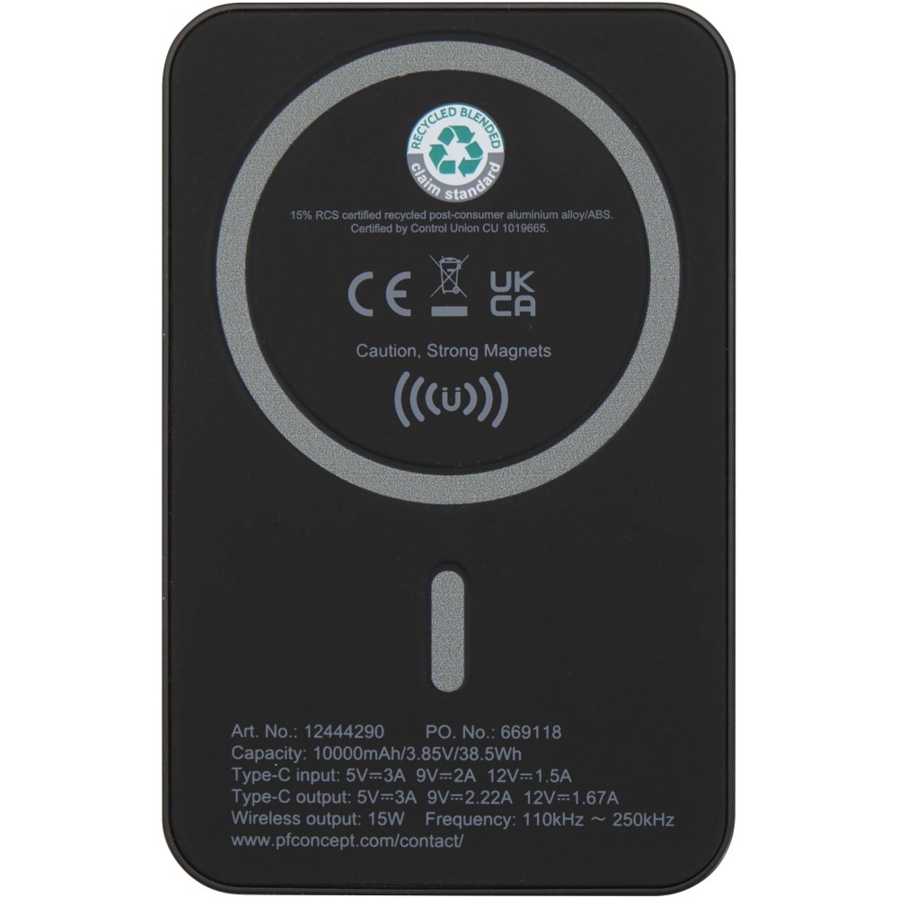 Tölts okosabban és gyorsabban a kompakt Acrab 10 000 mAh powerbank segítségével, amely újrahasznosított műanyagból készült. Akár 15W mágneses vezeték nélküli töltést kínál kompatibilis okostelefonokhoz, beleértve az iPhone 12 és újabb modelleket. Más, mágneses funkció nélküli, vezeték nélküli töltésre alkalmas készülékekhez fémgyűrűs matricát mellékelnek a pontos illeszkedés érdekében. A powerbank támogatja a 20W vezetékes Type-C gyorstöltést is, és egyszerre két eszköz töltésére képes (vezeték nélküli és vezetékes módban), így ideális választás útközben. A LED jelző folyamatosan mutatja a töltés és az akkumulátor állapotát. Emblémázás: Tamponnyomás, UV nyomtatás