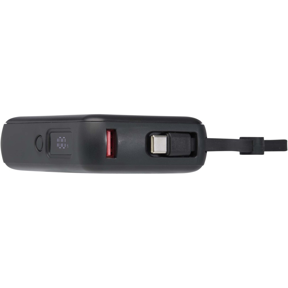 Az Acrux 10 000 mAh powerbank újrahasznosított műanyagból készült, és gyors, kényelmes töltést biztosít bárhol. Egy 35W USB-C be- és kimeneti porttal, valamint egy 18W USB-A porttal rendelkezik, továbbá beépített USB-C és Lightning kábellel, így nincs szükség külön tartozékokra az eszközök töltéséhez. A digitális kijelző egy pillantással mutatja a töltöttségi szintet, így könnyen nyomon követhető az akkumulátor állapota. Tökéletes választás okostelefonok és tabletek egész napos üzemeltetéséhez. Emblémázás: Tamponnyomás, UV nyomtatás