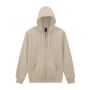 80% pamut és 20% poliészter. Belül bolyhos anyag, szilikonos mosással kezelve. Szürke színű szalagerősítés a nyakban és kapucnibélés, kenguruzseb, bordás ujj- és derékpasszé, YKK cipzár. 360 g/m2. Emblémázás: Hímzés, Szitanyomás