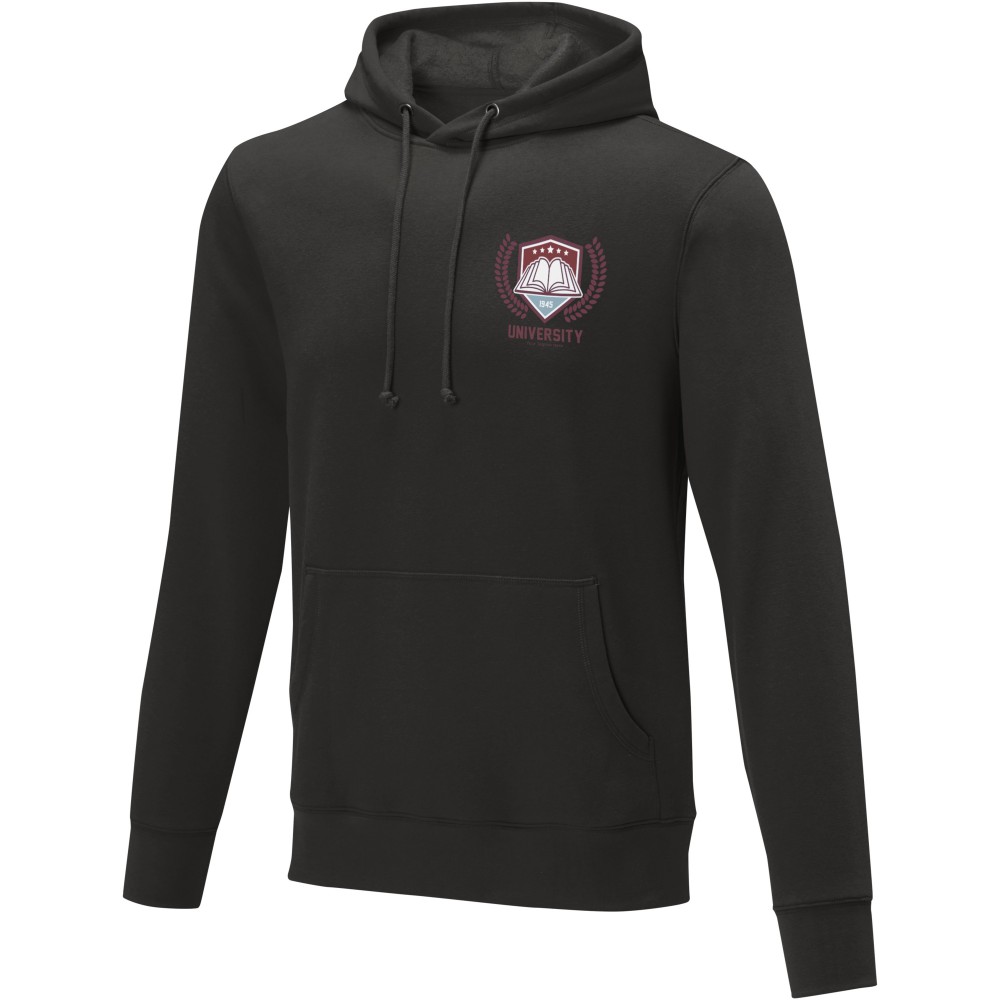 Belső emblémázási lehetőség. Letéphető, kivágható címke. Zsinór a kapucniban. Kenguru zseb. Lapos kötésű bordás alsó szegély. Lapos kötésű bordás mandzsetta. Bolyhos belső felület. Saját anyagából készült nyakszalag. Kötött anyag 50% pamut és 50% poliészter, 240 g/m2. Emblémázás: Hímzés, Szitanyomás