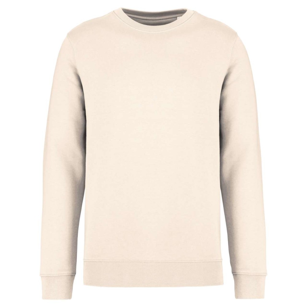 85 % bio, fésült pamutból és 15 % újrahasznosított poliészterből készült. Unisex. Egyenes szabás. LSF (Low Shrinkage Fleece: előzsugorított polár). Kerek nyakkivágás. Félhold alakú. Méretcímke organikus pamut és újrahasznosított poliészter logóval. 1x1 bordás nyakpasszé, alsó szegély és kézelő. Duplaöltés a kézelőn, karöltőben és kézelőn. Egyszeres felülvarrás a nyakkivágáson. Belső szalagozott nyakrész. A nyakrészen nincs márkajelzés, csak méretcímke a könnyebb dekorálás érdekében. A ruhadarabhoz kartonpapírból készült ismertetővel, amely felsorolja a felhasznált környezetbarát anyagokat. OEKO-TEX N CQ1007/7 STANDARD 100 tanúsítvánnyal rendelkezik. IFTH. 350 g/m2. Emblémázás: Hímzés, Szitanyomás