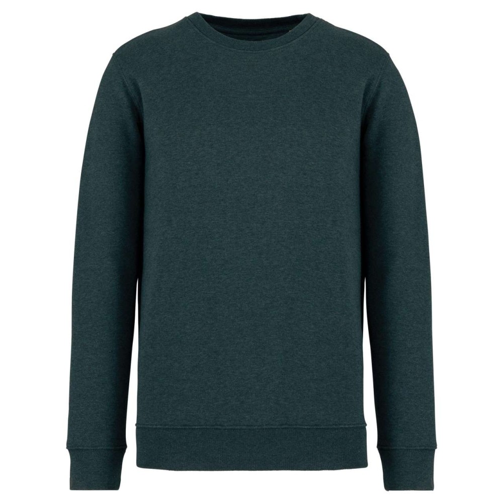 85 % bio, fésült pamutból és 15 % újrahasznosított poliészterből készült. Unisex. Egyenes szabás. LSF (Low Shrinkage Fleece: előzsugorított polár). Kerek nyakkivágás. Félhold alakú. Méretcímke organikus pamut és újrahasznosított poliészter logóval. 1x1 bordás nyakpasszé, alsó szegély és kézelő. Duplaöltés a kézelőn, karöltőben és kézelőn. Egyszeres felülvarrás a nyakkivágáson. Belső szalagozott nyakrész. A nyakrészen nincs márkajelzés, csak méretcímke a könnyebb dekorálás érdekében. A ruhadarabhoz kartonpapírból készült ismertetővel, amely felsorolja a felhasznált környezetbarát anyagokat. OEKO-TEX N CQ1007/7 STANDARD 100 tanúsítvánnyal rendelkezik. IFTH. 350 g/m2. Emblémázás: Hímzés, Szitanyomás