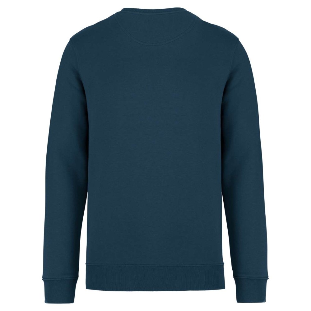 85 % bio, fésült pamutból és 15 % újrahasznosított poliészterből készült. Unisex. Egyenes szabás. LSF (Low Shrinkage Fleece: előzsugorított polár). Kerek nyakkivágás. Félhold alakú. Méretcímke organikus pamut és újrahasznosított poliészter logóval. 1x1 bordás nyakpasszé, alsó szegély és kézelő. Duplaöltés a kézelőn, karöltőben és kézelőn. Egyszeres felülvarrás a nyakkivágáson. Belső szalagozott nyakrész. A nyakrészen nincs márkajelzés, csak méretcímke a könnyebb dekorálás érdekében. A ruhadarabhoz kartonpapírból készült ismertetővel, amely felsorolja a felhasznált környezetbarát anyagokat. OEKO-TEX N CQ1007/7 STANDARD 100 tanúsítvánnyal rendelkezik. IFTH. 350 g/m2. Emblémázás: Hímzés, Szitanyomás