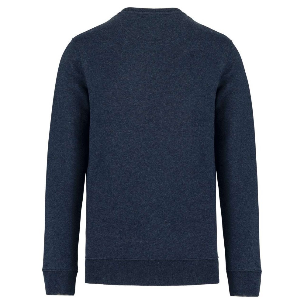 85 % bio, fésült pamutból és 15 % újrahasznosított poliészterből készült. Unisex. Egyenes szabás. LSF (Low Shrinkage Fleece: előzsugorított polár). Kerek nyakkivágás. Félhold alakú. Méretcímke organikus pamut és újrahasznosított poliészter logóval. 1x1 bordás nyakpasszé, alsó szegély és kézelő. Duplaöltés a kézelőn, karöltőben és kézelőn. Egyszeres felülvarrás a nyakkivágáson. Belső szalagozott nyakrész. A nyakrészen nincs márkajelzés, csak méretcímke a könnyebb dekorálás érdekében. A ruhadarabhoz kartonpapírból készült ismertetővel, amely felsorolja a felhasznált környezetbarát anyagokat. OEKO-TEX N CQ1007/7 STANDARD 100 tanúsítvánnyal rendelkezik. IFTH. 350 g/m2. Emblémázás: Hímzés, Szitanyomás