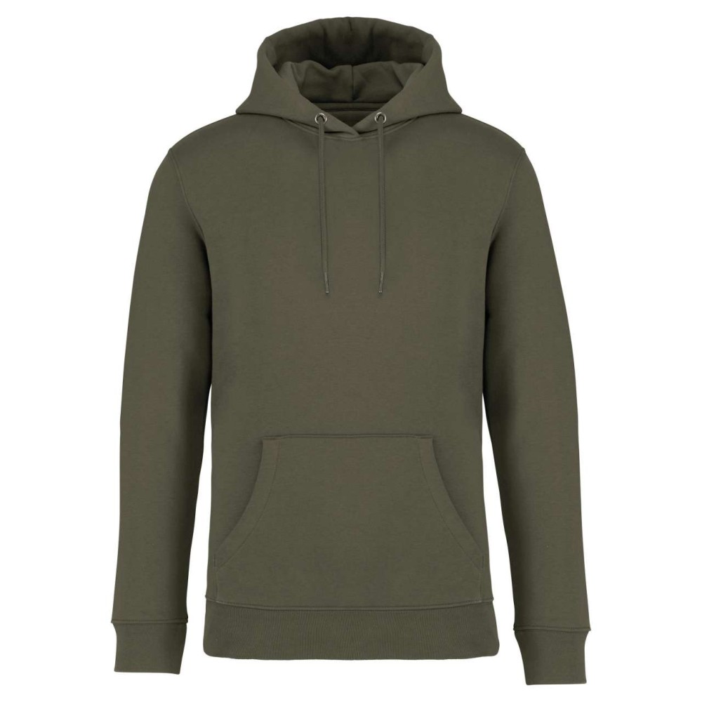 85 % bio, fésült pamutból és 15 % újrahasznosított poliészterből készült. Unisex. Egyenes szabás. Méretcímke organikus pamut és újrahasznosított poliészter logóval. LSF (Low Shrinkage Fleece: előzsugorított polár) kezelés. Kapucni. 1x1 bordás szegély és kézelő. Duplatűzés a kézelőn, a szegélyen és a nyaknál. Szalagozott nyakbelső hátul. Bélelt kapucni, a nyaknyíláson nincs felülvarrás, csak egy megkötés, hogy a húzózsinór a felső részen maradjon. Kerek húzózsinór a kapucnin fém véggel. Kenguru zseb. Nincs márkajelzés a nyakrészen, csak egy méretcímke a könnyű dekorálás érdekében. Karton függőcímkével érkezik, amely felsorolja a termék előállításához felhasznált környezetbarát anyagokat. Organikus pamutfonal. OEKO-TEX N CQ1007/7 STANDARD 100 tanúsítvánnyal rendelkezik. IFTH. 350 g/m2. Emblémázás: Hímzés, Szitanyomás