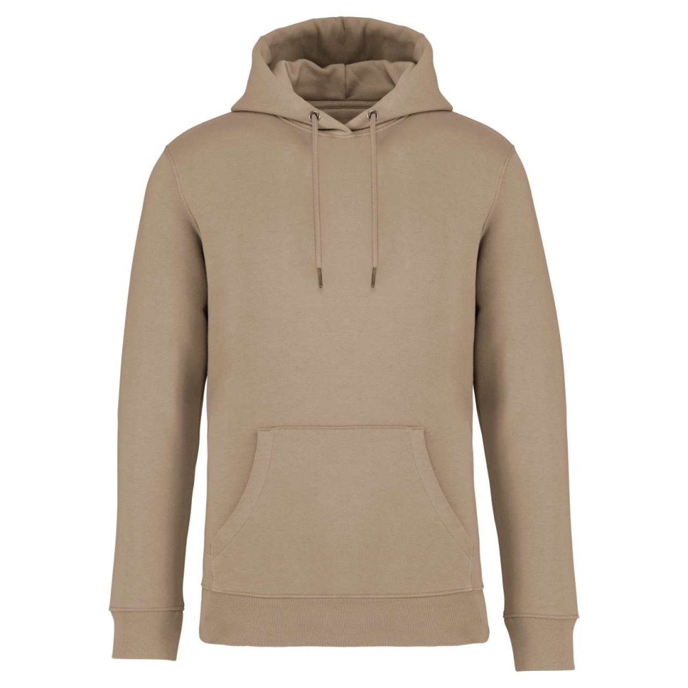 85 % bio, fésült pamutból és 15 % újrahasznosított poliészterből készült. Unisex. Egyenes szabás. Méretcímke organikus pamut és újrahasznosított poliészter logóval. LSF (Low Shrinkage Fleece: előzsugorított polár) kezelés. Kapucni. 1x1 bordás szegély és kézelő. Duplatűzés a kézelőn, a szegélyen és a nyaknál. Szalagozott nyakbelső hátul. Bélelt kapucni, a nyaknyíláson nincs felülvarrás, csak egy megkötés, hogy a húzózsinór a felső részen maradjon. Kerek húzózsinór a kapucnin fém véggel. Kenguru zseb. Nincs márkajelzés a nyakrészen, csak egy méretcímke a könnyű dekorálás érdekében. Karton függőcímkével érkezik, amely felsorolja a termék előállításához felhasznált környezetbarát anyagokat. Organikus pamutfonal. OEKO-TEX N CQ1007/7 STANDARD 100 tanúsítvánnyal rendelkezik. IFTH. 350 g/m2. Emblémázás: Hímzés, Szitanyomás