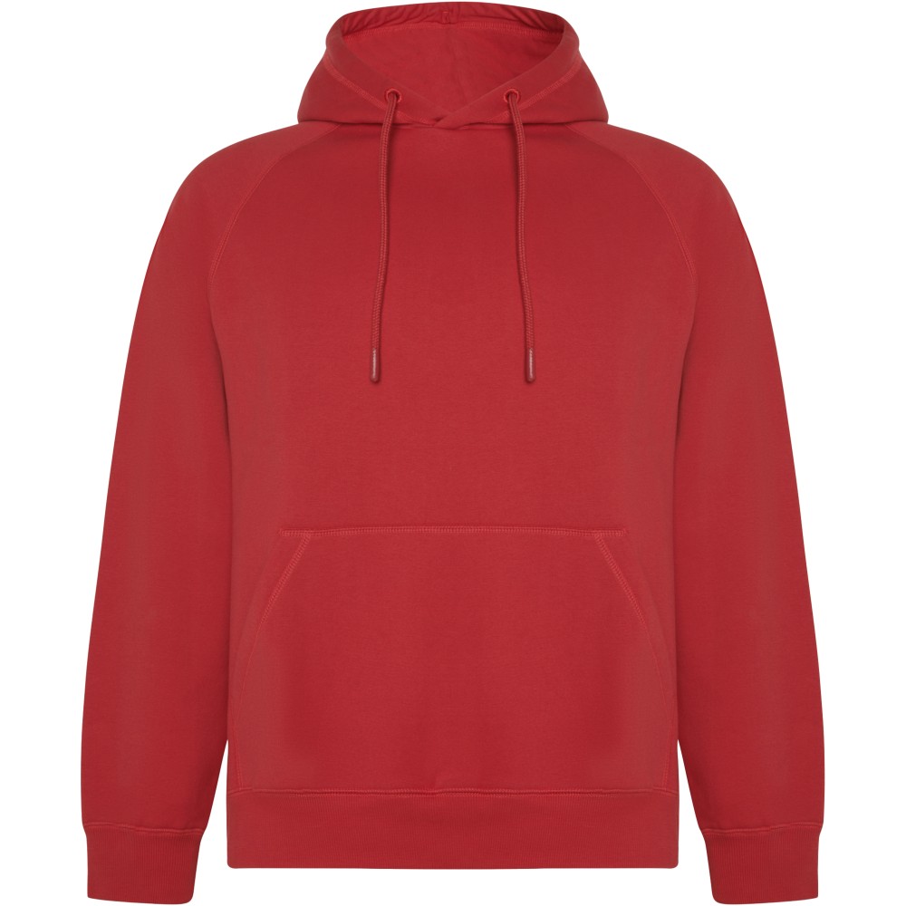 Uniszex, kapucnis pulóver organikus pamutból és újrahasznosított poliészterből. Kenguru zseb. Bélelt kapucni. Állítható húzózsinór és közbehímzett zsinórnyílások. A kézelő- és az aljpasszé 2x1 bordás anyagból készült. Csomagolás egyenként újrahasznosított zacskóban. 60% organikus pamut és 40% újrahasznosított poliészter, 300 g/m2. Emblémázás: Hímzés, Szitanyomás