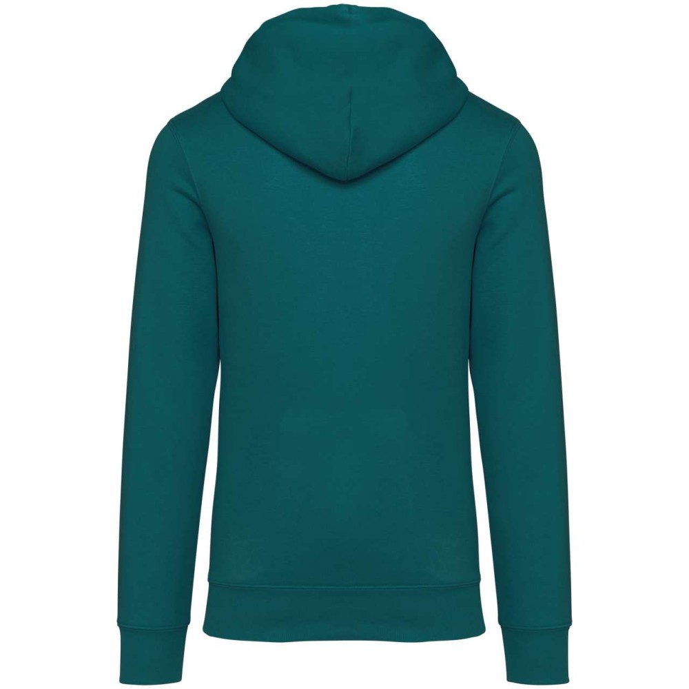 85 % bio, fésült pamutból és 15 % újrahasznosított poliészterből készült. Unisex. Egyenes szabás. Méretcímke organikus pamut és újrahasznosított poliészter logóval. LSF (Low Shrinkage Fleece: előzsugorított polár) kezelés. Kapucni. 1x1 bordás szegély és kézelő. Duplatűzés a kézelőn, a szegélyen és a nyaknál. Szalagozott nyakbelső hátul. Bélelt kapucni, a nyaknyíláson nincs felülvarrás, csak egy megkötés, hogy a húzózsinór a felső részen maradjon. Kerek húzózsinór a kapucnin fém véggel. Kenguru zseb. Nincs márkajelzés a nyakrészen, csak egy méretcímke a könnyű dekorálás érdekében. Karton függőcímkével érkezik, amely felsorolja a termék előállításához felhasznált környezetbarát anyagokat. Organikus pamutfonal. OEKO-TEX N CQ1007/7 STANDARD 100 tanúsítvánnyal rendelkezik. IFTH. 350 g/m2. Emblémázás: Hímzés, Szitanyomás