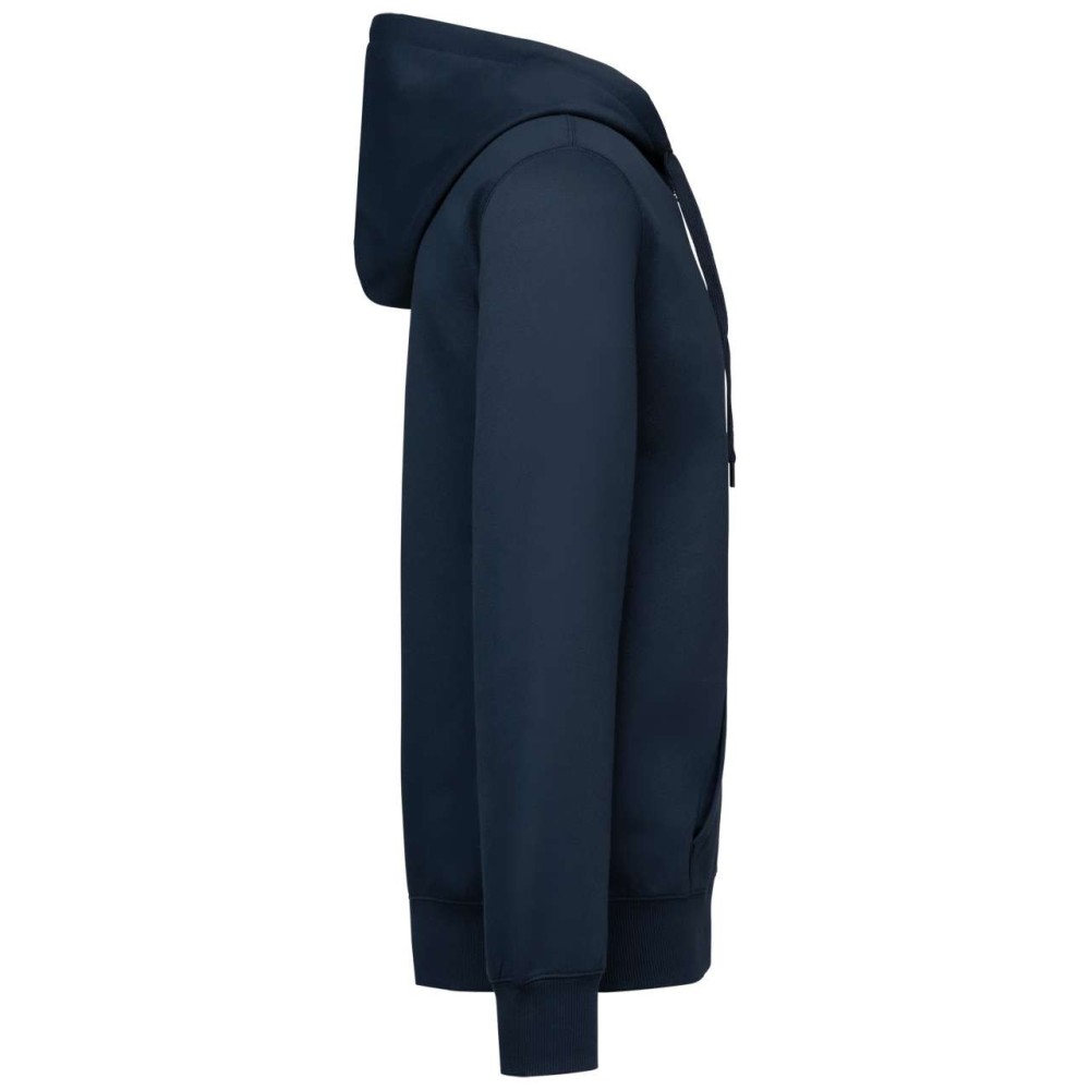 50% gyűrűs fonású pamut / 50% újrahasznosított poliészter, fésült pamut. Egyenes szabású, vágott és varrott. 1x1 bordás kötés a nyakkivágás, a mandzsetta és az alsó szegély jobb megjelenése érdekében. Kenguruzseb. Policotton dzsörzé bélésű kapucni lapos húzózsinórral. Színben illeszkedő dzsörzé szalagos belső a nyakkivágásnál. Csak méretcímke márkajelzés nélkül. Emblémázás: Hímzés, Szitanyomás