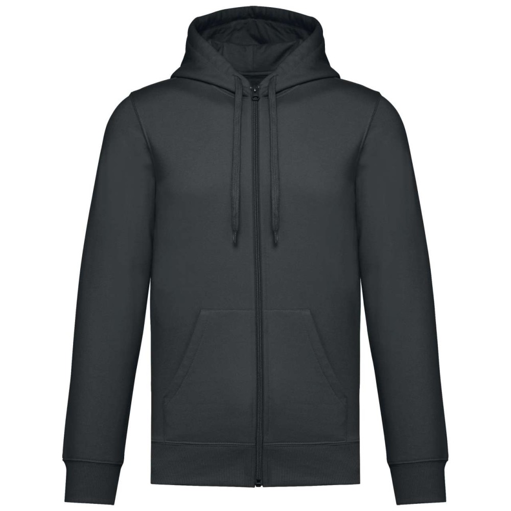 50% gyűrűs fonású pamut / 50% újrahasznosított poliészter, fésült pamut. Egyenes szabású, vágott és varrott. 1x1 bordás kötés a nyakkivágás, a mandzsetta és az alsó szegély jobb megjelenése érdekében. Kenguruzseb, nylon cipzár. Policotton dzsörzé bélésű kapucni lapos húzózsinórral. Színben illeszkedő dzsörzé szalagos belső a nyakkivágásnál. Csak méretcímke márkajelzés nélkül. Emblémázás: Hímzés, Szitanyomás
