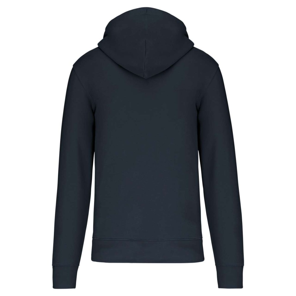85% organikus pamut, 15% újrahasznosított poliészter. Alacsony zsugorodású anyag, 3-szálas szálcsiszolt pamut. Fésűs pamut, enzimmel mosott, egyenes szabású. 1x1-es bordás nyakpasszé. Kenguruzseb, 180 g-os 10% pamutbélésű kapucni. Színben illeszkedő dzsörzé nyakrész és félhold alakú eldolgozás a nyakrész belsejénél. Duplaöltéses szegés a nyakrészen, ahol nincs márkajelzés, csak méretjelölés a könnyebb egyediesítés érdekében. Emblémázás: Hímzés, Szitanyomás