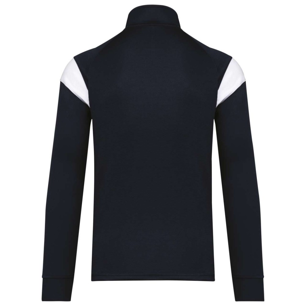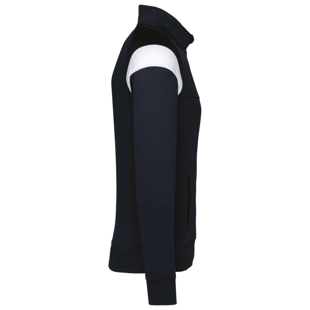 Anyaga: 100% matt poliészter interlock. Egyenes szabás. Elöl fordított cipzáras záródás színazonos nejlonból. Raglán ujjak kontrasztos vállbetétekkel. Kontrasztos mell- és vállkialakítás. Két cipzáras elülső zseb. Texturált anyagbetétek az oldalakon és a hátrészen. Cipzárfedő a felső nyakkivágásnál a nagyobb kényelem érdekében. Könnyen eltávolítható márkajelzés a dekorációhoz. Emblémázás: Hímzés, Szitanyomás