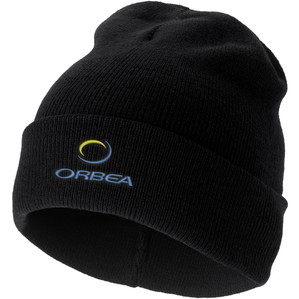 Egyrétegű sapka duplán felhajtott széllel. 1x1-es bordás kötésű, 100% akril. Emblémázás: Hímzés