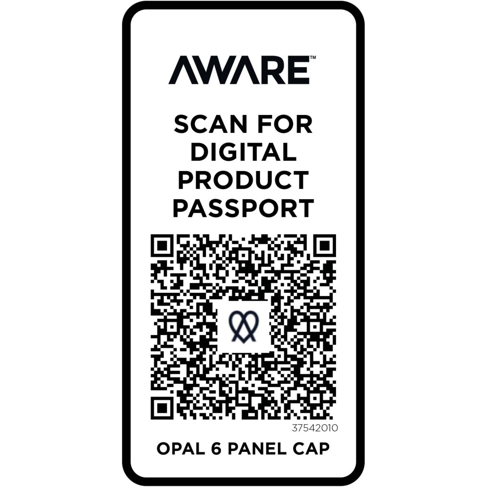 Az Opal 6 paneles sapka 70%-ban újrahasznosított pamutból és 30%-ban újrahasznosított poliészterből készült. Úgy tervezték, hogy 58 cm-es fejkörfogatnál kényelmesen illeszkedjen, a fémcsatos záródás pedig könnyű és biztonságos beállítást tesz lehetővé. A sapka Cyclo újrahasznosított szálakat tartalmaz, ahol előválogatott hulladékot használnak, amely meghatározza a fonal színét. Ezek a szálak nem csak a szűz erőforrások iránti igényt csökkentik, hanem a körkörös élet iránti elkötelezettséget is mutatják, megtestesítve a hulladékcsökkentés lényegét. Minden sapkához egy Aware nyomjelző is tartozik. Ez az innovatív funkció lehetővé teszi a felhasználók számára, hogy egy QR-kód segítségével nyomon követhessék a termék eredetét és útját, növelve az ellátási lánc átláthatóságát, és elősegítve a termék és a gyártási folyamat közötti szorosabb kapcsolatot. Emblémázás: Hímzés, Szitanyomás