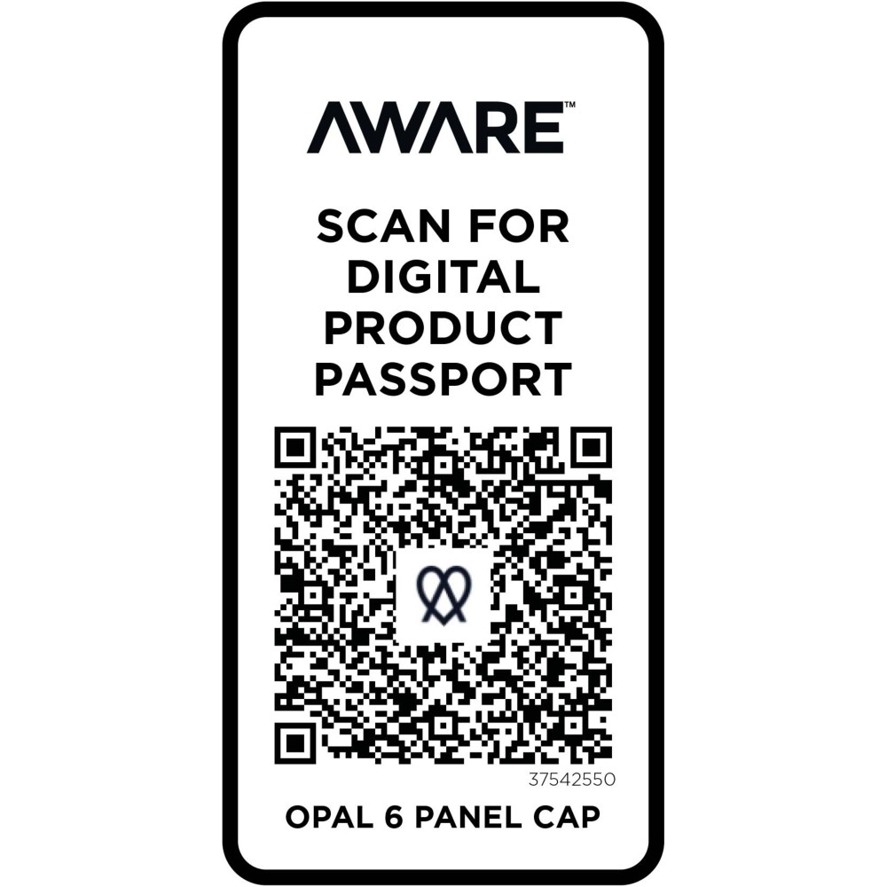 Az Opal 6 paneles sapka 70%-ban újrahasznosított pamutból és 30%-ban újrahasznosított poliészterből készült. Úgy tervezték, hogy 58 cm-es fejkörfogatnál kényelmesen illeszkedjen, a fémcsatos záródás pedig könnyű és biztonságos beállítást tesz lehetővé. A sapka Cyclo újrahasznosított szálakat tartalmaz, ahol előválogatott hulladékot használnak, amely meghatározza a fonal színét. Ezek a szálak nem csak a szűz erőforrások iránti igényt csökkentik, hanem a körkörös élet iránti elkötelezettséget is mutatják, megtestesítve a hulladékcsökkentés lényegét. Minden sapkához egy Aware nyomjelző is tartozik. Ez az innovatív funkció lehetővé teszi a felhasználók számára, hogy egy QR-kód segítségével nyomon követhessék a termék eredetét és útját, növelve az ellátási lánc átláthatóságát, és elősegítve a termék és a gyártási folyamat közötti szorosabb kapcsolatot. Emblémázás: Hímzés, Szitanyomás