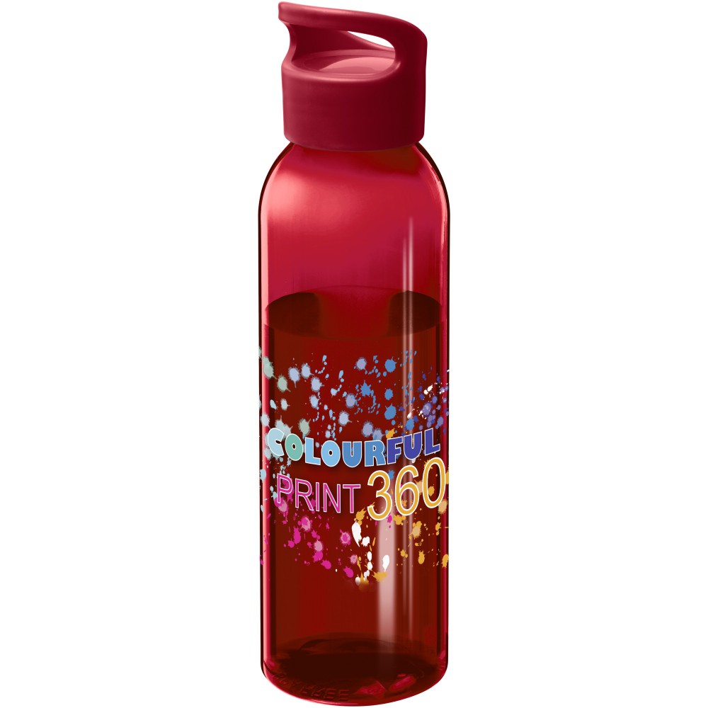 Az átlátszó Sky vizes palack Eastman Tritan anyagból készült, így ez a palack BPA-mentes, könnyű, tartós és ütésálló. Az egyfalú flakon 650 ml folyadékot tud tárolni, és a legtöbb hátizsák oldalzsebébe, valamint a legtöbb autós pohártartóba elfér. A felcsavarható fedél biztosítja a könnyű nyitást és zárást, valamint beépített hordozó fogantyúval rendelkezik. Szivárgásmentes. Szénsavas italokkal nem használható. Mosogatógépben nem mosható és mikrohullámú sütőben történő melegítésre nem alkalmas. Emblémázás: Körszita, Tamponnyomás, UV nyomtatás