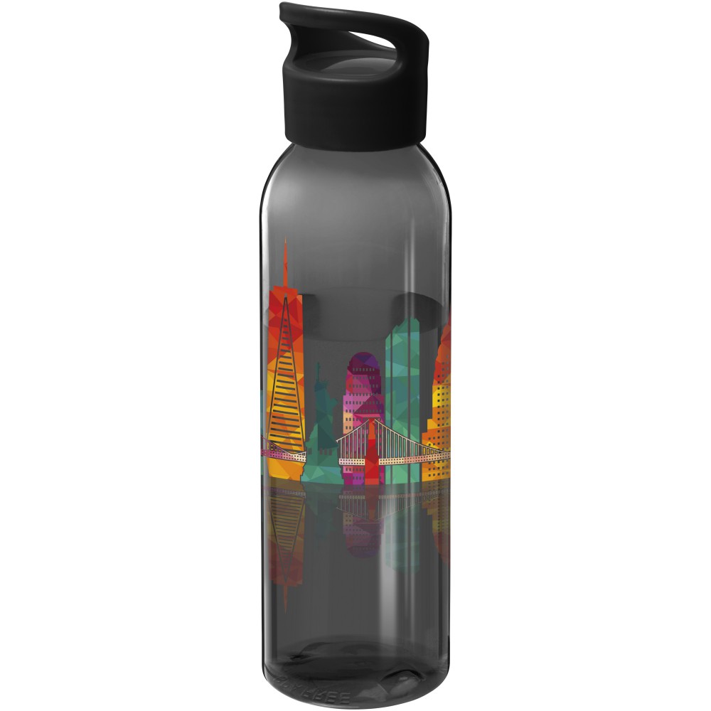 Az átlátszó Sky vizes palack Eastman Tritan anyagból készült, így ez a palack BPA-mentes, könnyű, tartós és ütésálló. Az egyfalú flakon 650 ml folyadékot tud tárolni, és a legtöbb hátizsák oldalzsebébe, valamint a legtöbb autós pohártartóba elfér. A felcsavarható fedél biztosítja a könnyű nyitást és zárást, valamint beépített hordozó fogantyúval rendelkezik. Szivárgásmentes. Szénsavas italokkal nem használható. Mosogatógépben nem mosható és mikrohullámú sütőben történő melegítésre nem alkalmas. Emblémázás: Körszita, Tamponnyomás, UV nyomtatás