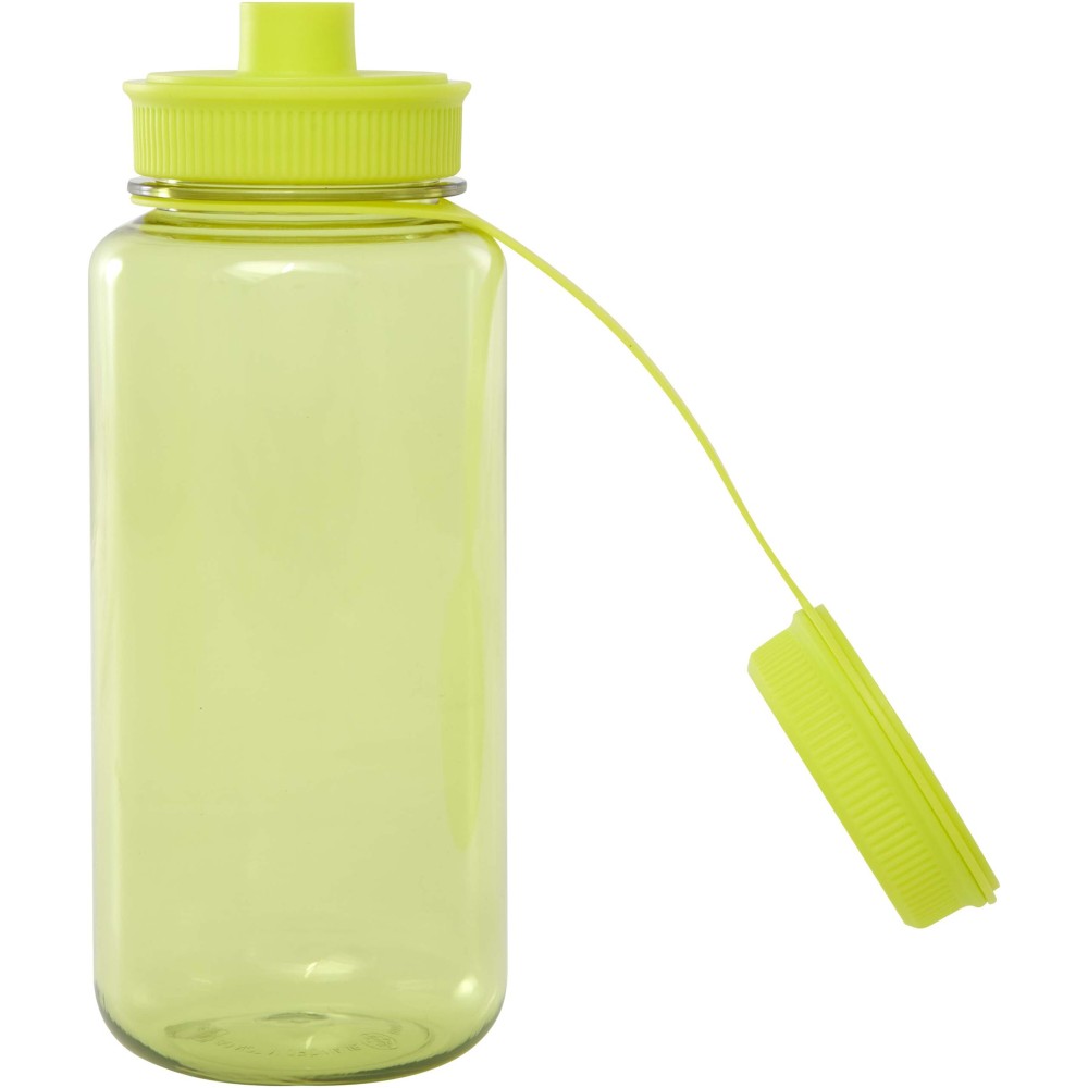 Egyfalú sportpalack RCS tanúsítvánnyal rendelkező RPET-ből, csavaros tetővel, szivárgásmentes fedéllel és fogantyúval. Kettős nyitású kialakítás a könnyű tisztítás és töltés érdekében. Az EFSA által jóváhagyott (Európai Élelmiszerbiztonsági Hatóság) PET újrahasznosítási folyamatnak megfelelően készült. Űrtartalma: 900 ml. Emblémázás: Tamponnyomás