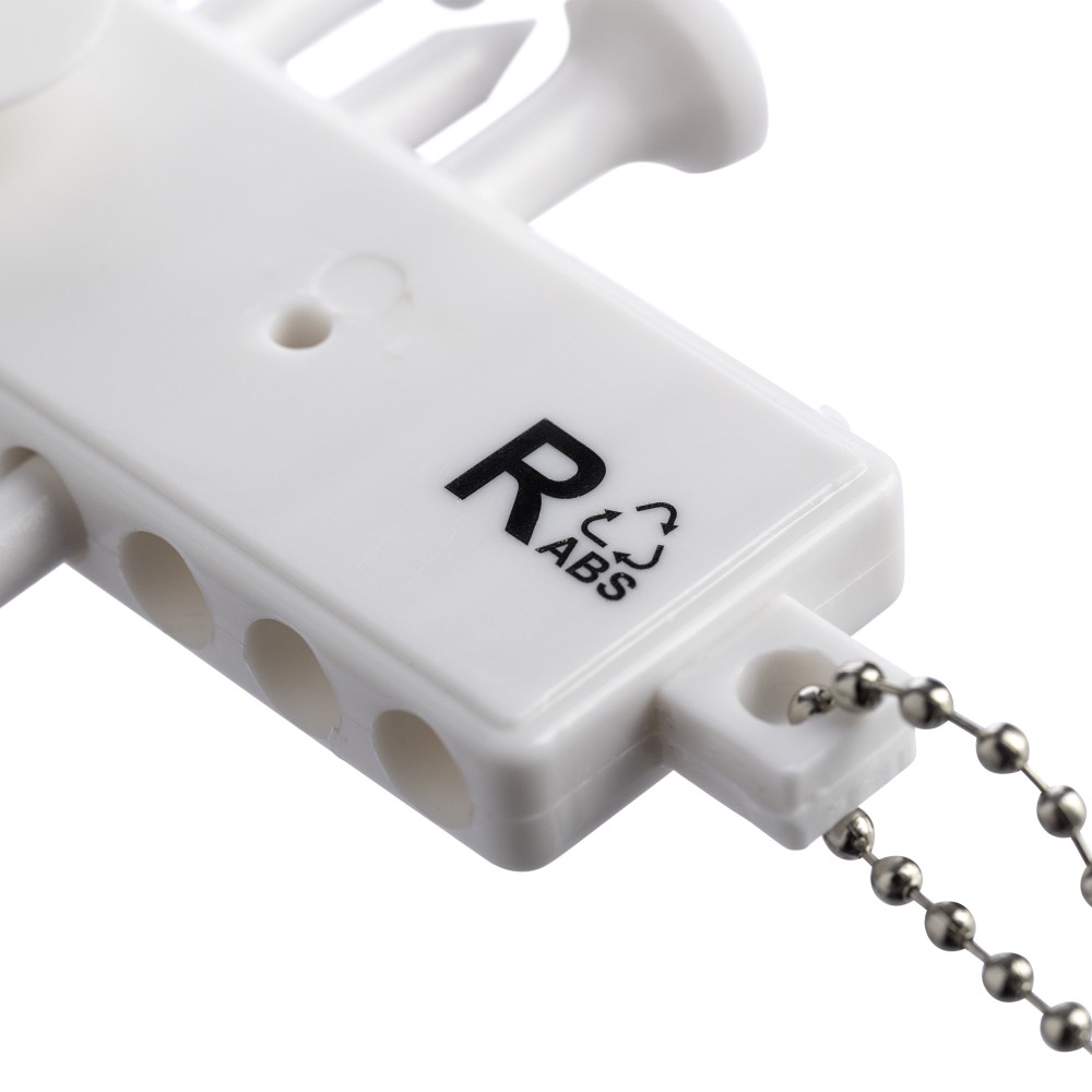 Újrahasznosított ABS goltee-készlet, amely 12 tee-ből áll, kompakt tartóban, hátulján három jelölővel. Fémzsinórral a könnyű rögzítés érdekében, hátulján pedig újrahasznosított ABS logóval. Emblémázás: Tamponnyomás
