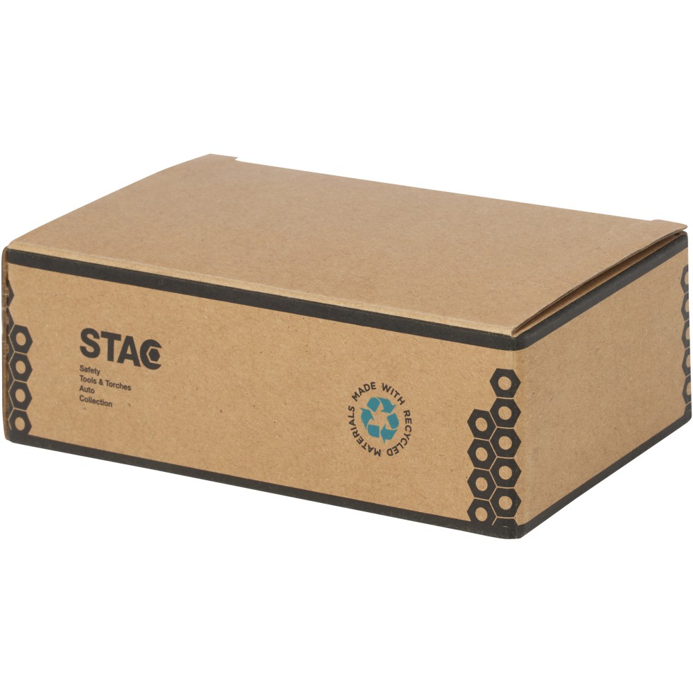 Kompakt 8 az 1-ben csavarhúzó készlet 20% RCS tanúsítvánnyal rendelkező újrahasznosított műanyagból, zseblámpával. A Recycled Claim Standard (RCS) a termék újrahasznosított anyag tartalmát a teljes ellátási láncban ellenőrzi. Ez a praktikus eszköz 2 LED lámpával, 3 Phillips fejjel és 3 lapos fejjel rendelkezik. Három LR44 elemmel, fenntartható forrásból származó STAC díszdobozba csomagolva szállítjuk. Újrahasznosított ABS műanyag. Csomagolás: FSC Mix Credit P5.1 CU-COC-877277. Emblémázás: Tamponnyomás