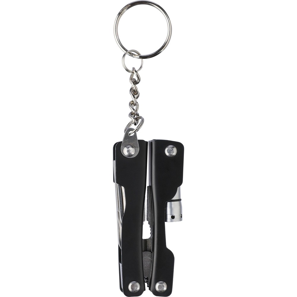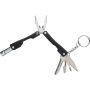 Összecsukható multifunkciós szerszám 10 funkcióval és LED zseblámpával. 600D poliészter tokban, tépőzáras záródással. A tok övre rögzíthető. Tartalmazza az elemeket. Egyenként barna kartondobozba csomagolva. Anyaga: rozsdamentes acél. Emblémázás: Gravírozás, Tamponnyomás