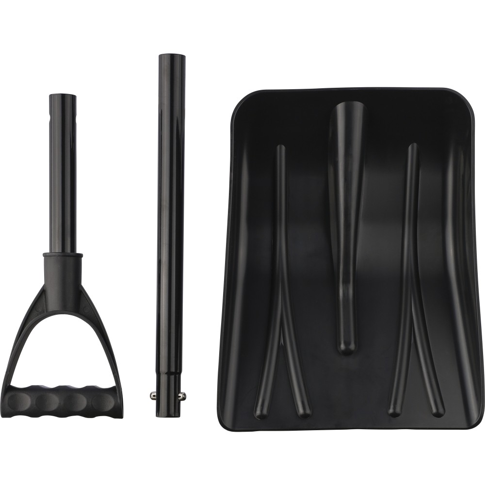 PP és acél hólapát, melynek teljes hossza 78,5 cm. Jobbkezes modell levehető, kétrészes kialakítással a könnyű tárolás érdekében. Strapabíró műanyag nyéllel. Nagy kiszerelésben csomagolva, 20 darab/doboz. Emblémázás: