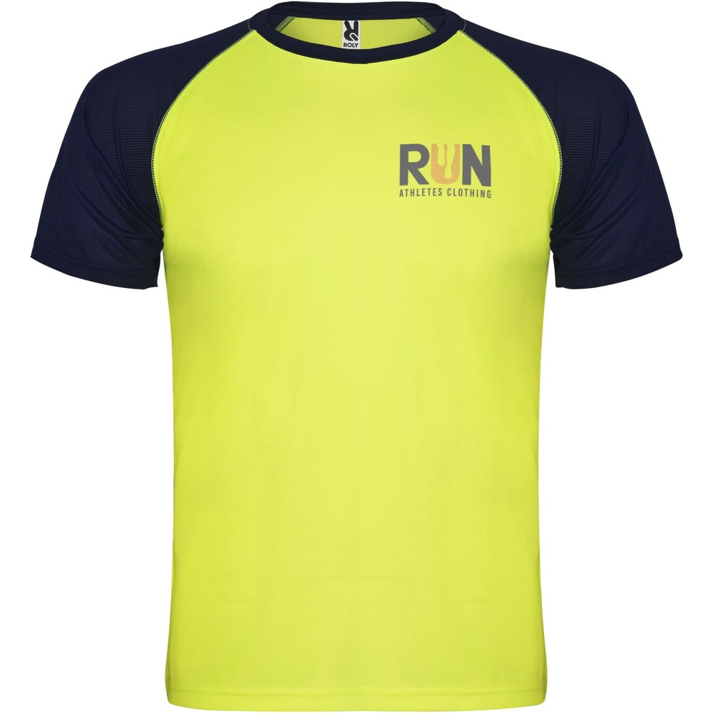 Roly Indianapolis rövid ujjú gyerek sportpóló, fluor yellow, navy blue