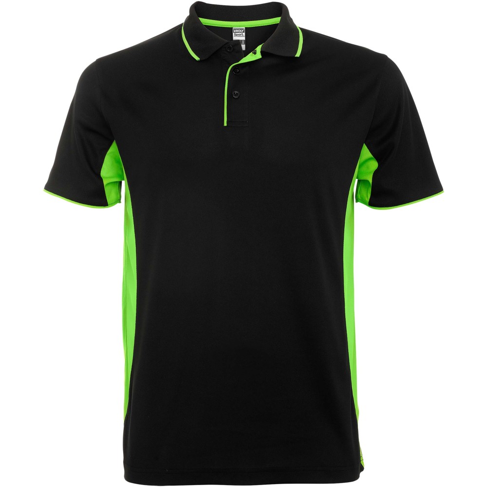 Roly Montmelo rövid ujjú uniszex sportpóló, solid black, lime