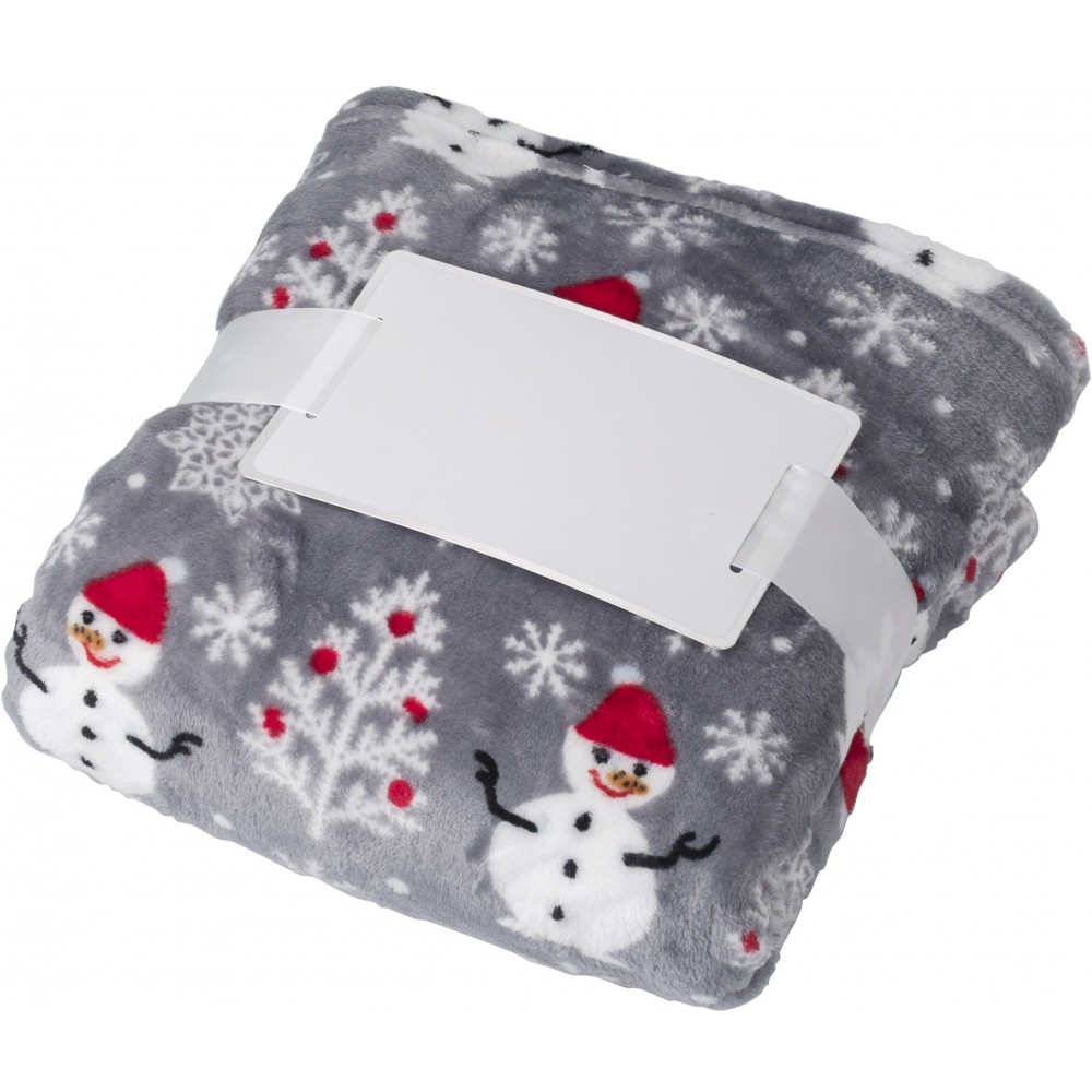 Flanell takaró hóember mintával, összefogó szalaggal. 260 g/m2. Teljes méret: 120 x 150 cm. Emblémázás: Hímzés, Tamponnyomás