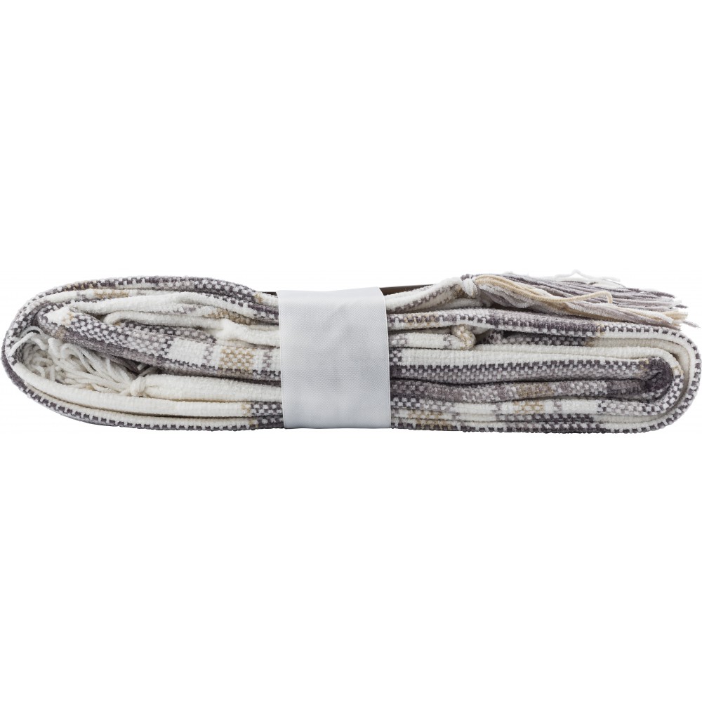 Zsenília takaró a rövidebb oldalain rojtokkal. Tépőzáras szalaggal összefogva. 100% poliészter (285 gr / m2). Emblémázás: Hímzés, Szitanyomás, Tamponnyomás