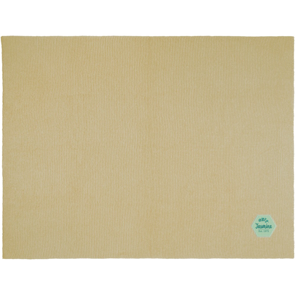 A Suzy kötött takaró sokoldalú kiegészítője minden otthoni vagy irodai helyiségnek. Ez a takaró 100% GRS poliészter kötött anyagból készült, amely biztosítja a tartósságot és a fenntarthatóságot. 150 x 120 cm-es méretével a méret és a kényelem tökéletes egyensúlyát kínálja. A szalaggal kötött dizájn egy csipetnyi kifinomultságot kölcsönöz, hívogató a logó elhelyezése számára. Emblémázás: Hímzés, Szitanyomás, Tamponnyomás