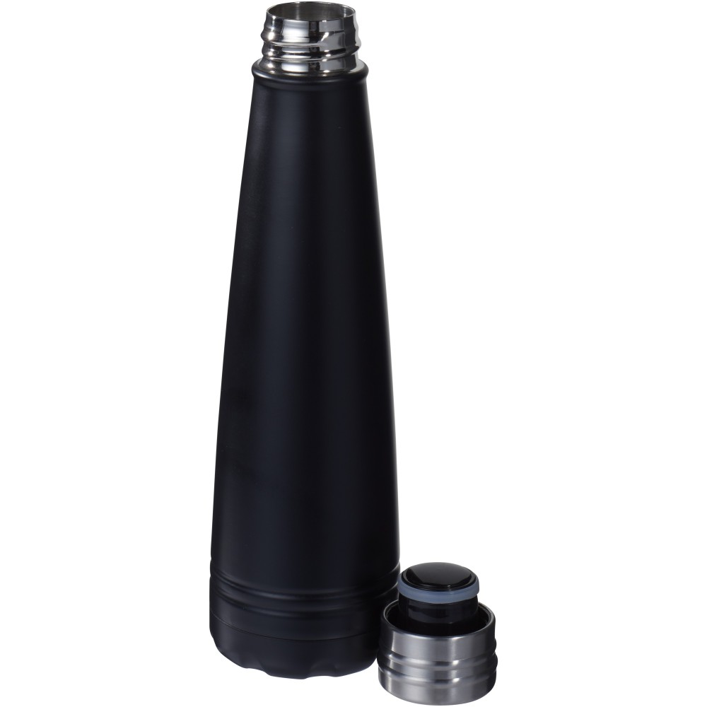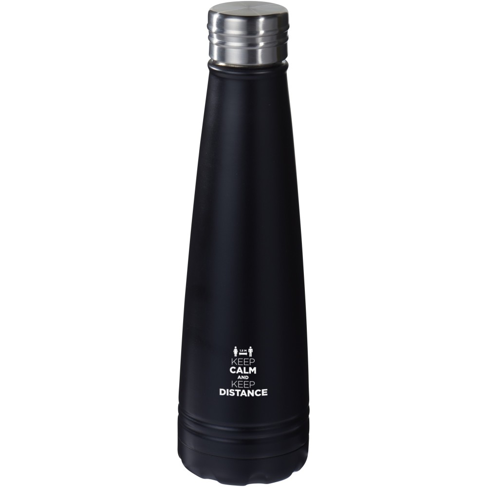Duke vákumos palack. Belső fala réz, ennek köszönhetően 48 órás hideg- és 12 órás melegtartási képességgel rendelkezik. Szivárgásmentes. Szénsavas italokkal nem használható. Mosogatógépben nem mosható és mikrohullámú sütőben történő melegítésre nem alkalmas. Űrtartalom: 500 ml. Csomagolása Avenue díszdoboz. Emblémázás: Gravírozás, Körszita, Tamponnyomás