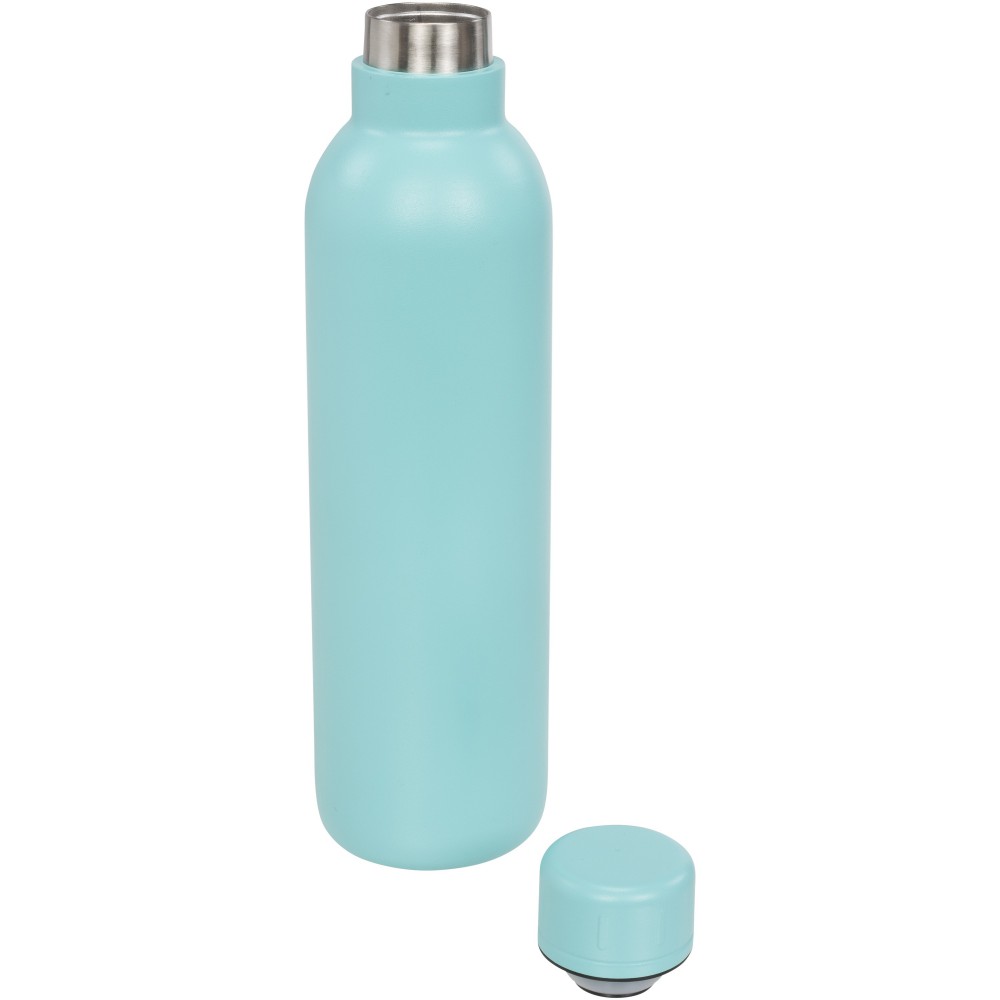 Erős, duplafalú, vákuumos palack, réz szigeteléssel. Hidegtartó képesség 48 óra, melegtartó képesség 12 óra. A duplafalas kialakításnak köszönhetően nincs külső vízlecsapódás. Trendi, matt bevonat. Rozsdamentes, csavaros, cseppmentes kupak. Szivárgásmentes. Szénsavas italokkal nem használható. Mosogatógépben nem mosható és mikrohullámú sütőben történő melegítésre nem alkalmas. Űrtartalom: 510 ml. csomagolás: Avenue doboz. Emblémázás: Bögredekor, Gravírozás, Körszita, Tamponnyomás