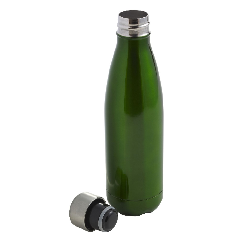 Egyfalas palack csavaros kupakkal. Űrtartalom: 650 ml. Nem szivárgásmentes. Mosogatógépben nem tisztítható. Rozsdamentes acél. Emblémázás: Bögredekor, Gravírozás, Körszita, Tamponnyomás