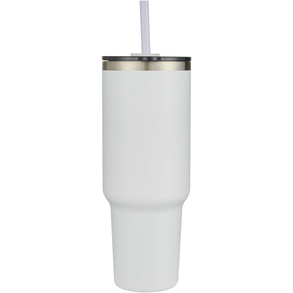 RCS tanúsítvánnyal rendelkező duplafalú rézvákuum szigetelésű pohár, amely 91%-ban használt rozsdamentes acélból készült és legalább 24 órán keresztül hidegen tartja az italokat. Tritan szívószállal rendelkezik, és csúsztatható fedél funkcióval van ellátva, amely megakadályozza a kiömlést. A 100%-ban újrahasznosított műanyag nyomófedél biztonságosan tartja a szívószálat a helyén, és könnyen forgatható, hogy hozzáférj az ivónyíláshoz. Tartós külső porfestett bevonat. Űrtartalom: 1200 ml. Kézi mosogatás javasolt. Stanley hasonmás. Emblémázás: Gravírozás, Tamponnyomás