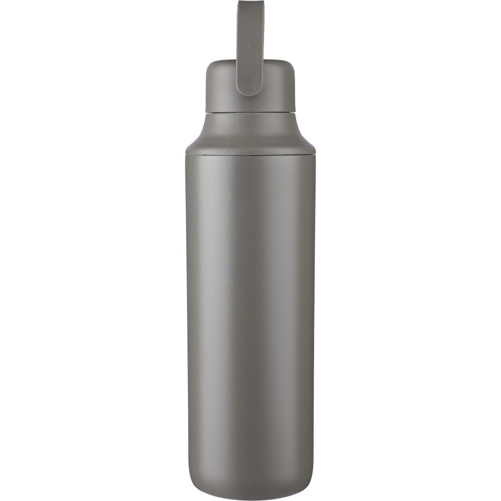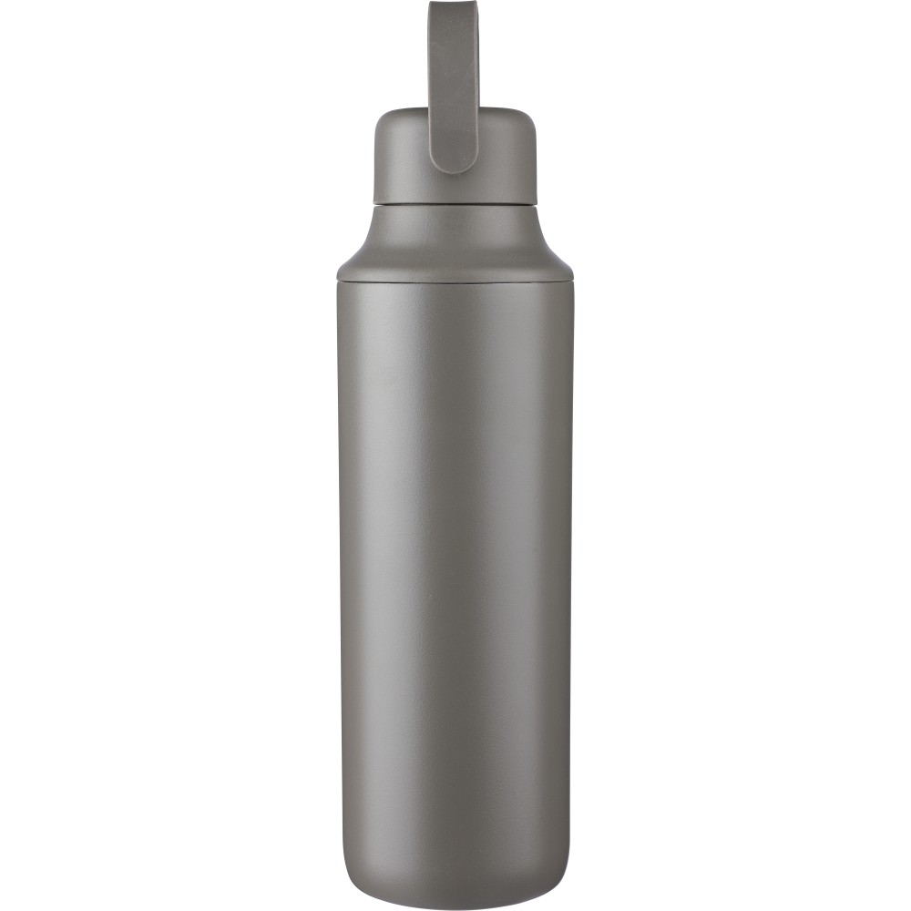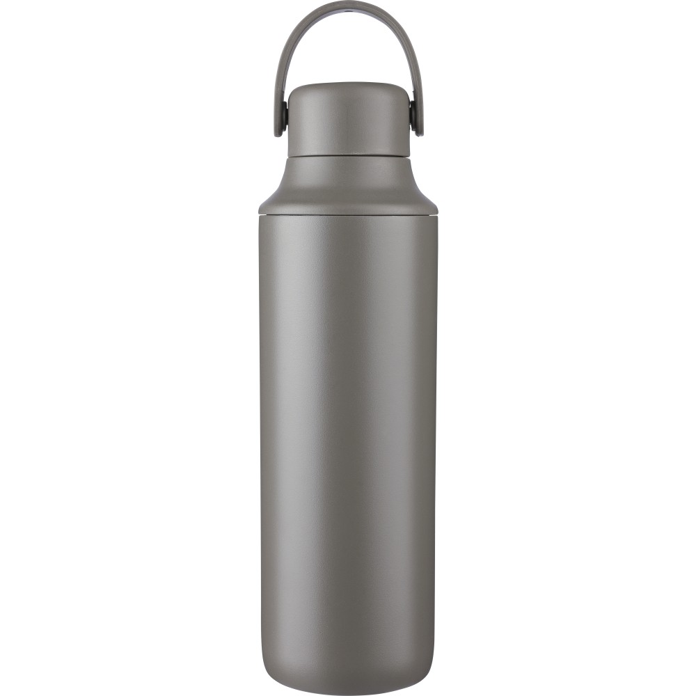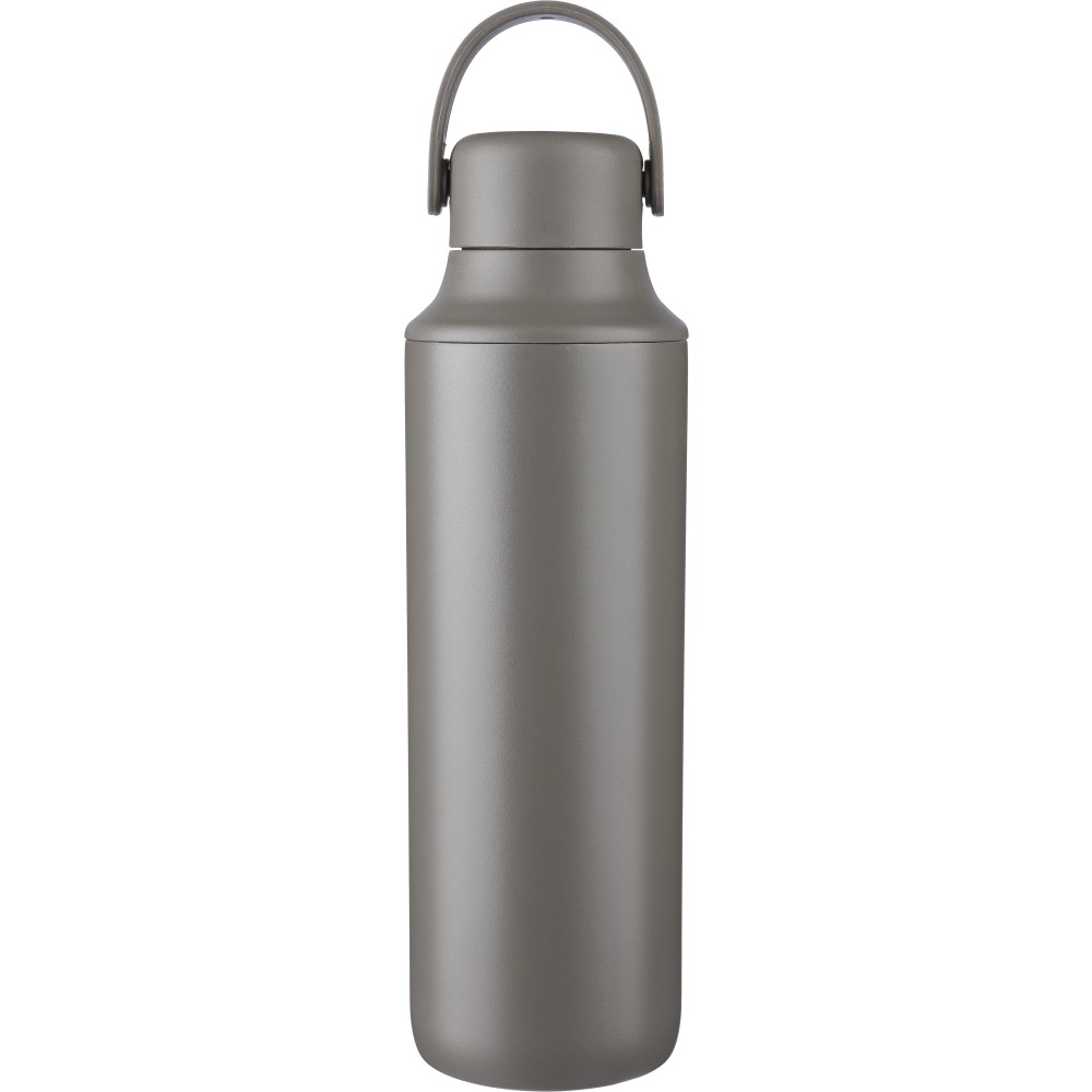 Duplafalú rozsdamentes acél kulacs (500 ml), belső anyaga 304-es rozsdamentes acél, külső része pedig 201-es rozsdamentes acél. Két tetővel szállítjuk: egy hordozófüles PP tetővel és egy átlátszó PS tetővel, amely a mellékelt rozsdamentes acél szívószállal, szilikon véggel és tartóval használható. Egyenként csomagolva, barna kartondobozban. Emblémázás: Bögredekor, Gravírozás, Körszita