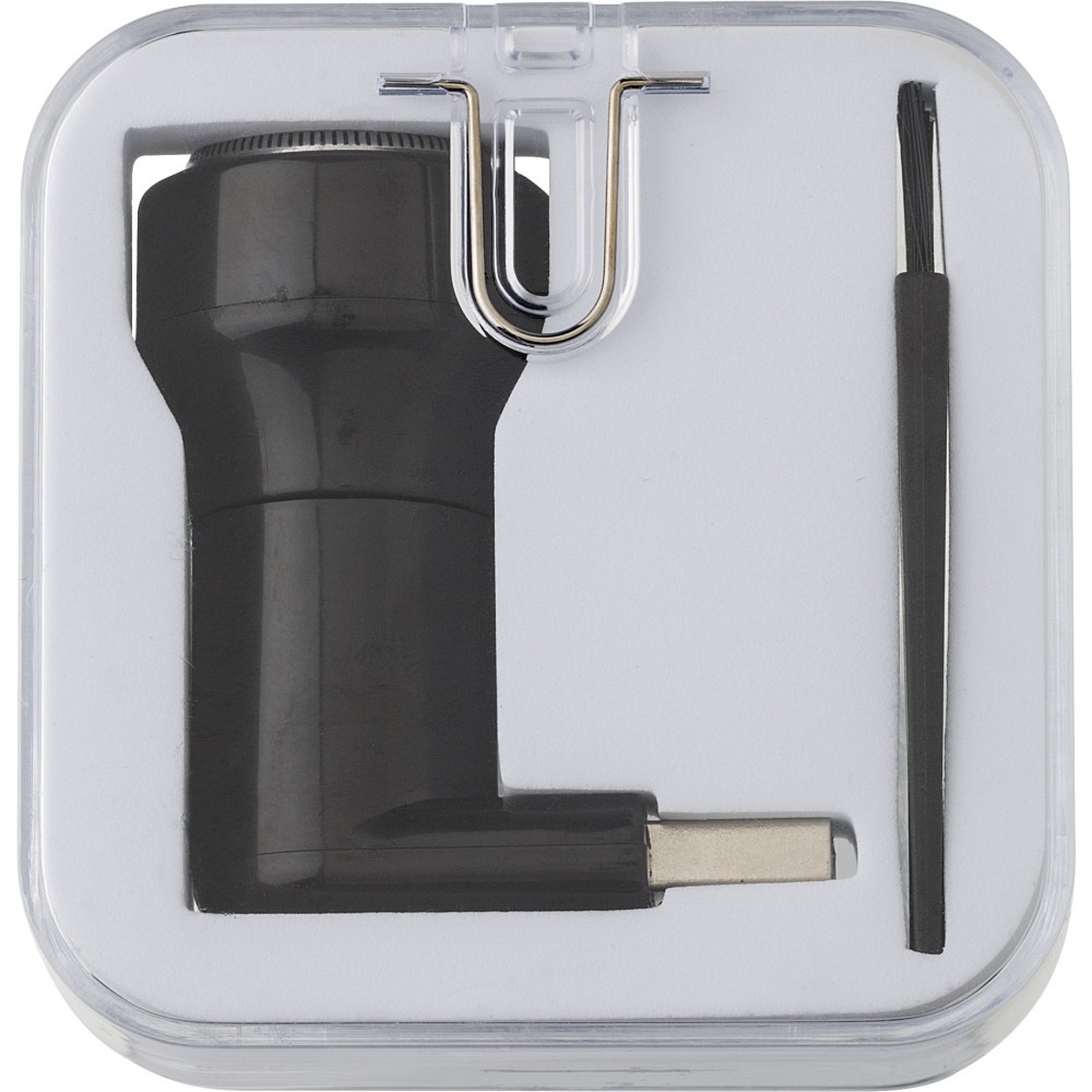 Borotva USB csatlakozóval. Csomagolása átlátszó dobozban. Emblémázás: Tamponnyomás, UV nyomtatás