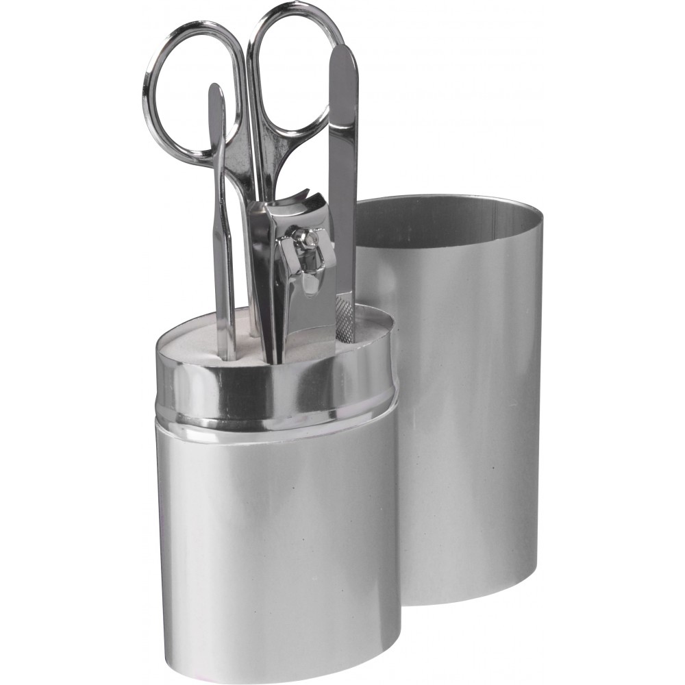 4 db-os manikűrkészlet alumínium tokban. Emblémázás: Gravírozás, Tamponnyomás