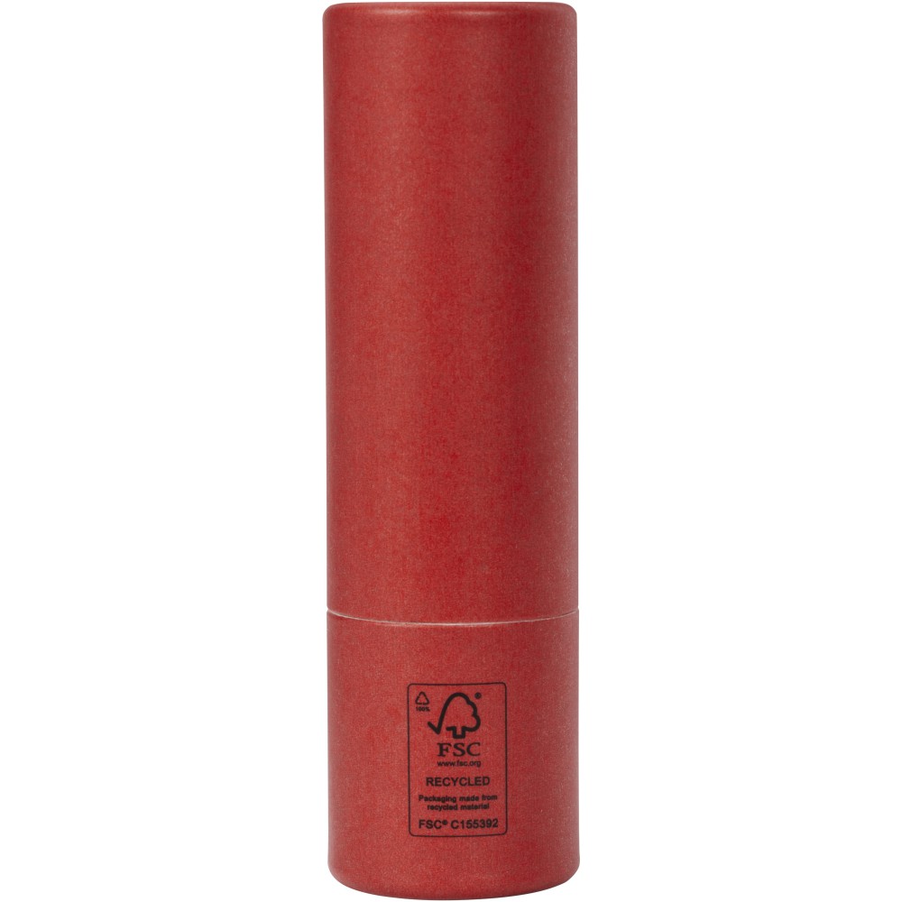 Ajakápoló. Védelmet nyújt a nap ultraibolya (UV) sugarai ellen. Úgy tervezték, hogy hidratálja és védje az ajkakat. A külső burkolat újrahasznosított papírból készült. Jó választás magánszemélyek és vállalkozások számára, akik a fenntarthatóbb termékeket részesítik előnyben. Az illata vanília. Szavatosság: vásárlástól számított 3 év. FSC újrahasznosított 100% P10 CU-COC-877277. Emblémázás: Tamponnyomás, UV nyomtatás