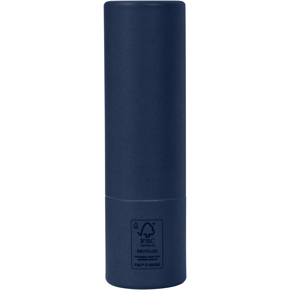 Ajakápoló. Védelmet nyújt a nap ultraibolya (UV) sugarai ellen. Úgy tervezték, hogy hidratálja és védje az ajkakat. A külső burkolat újrahasznosított papírból készült. Jó választás magánszemélyek és vállalkozások számára, akik a fenntarthatóbb termékeket részesítik előnyben. Az illata vanília. Szavatosság: vásárlástól számított 3 év. FSC újrahasznosított 100% P10 CU-COC-877277. Emblémázás: Tamponnyomás, UV nyomtatás