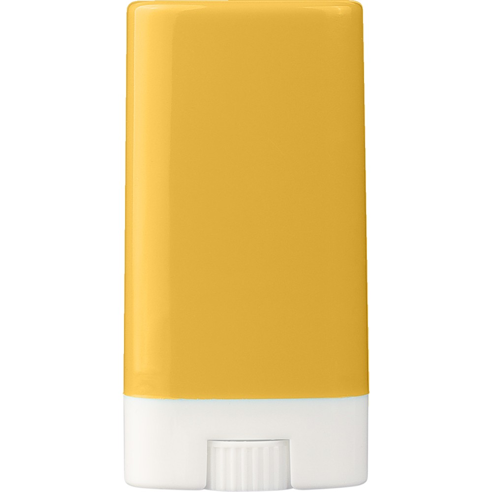 SPF 30 faktorszámú napvédő stift, könnyen kenhető, vízálló kivitelben. Emblémázás: Tamponnyomás, UV nyomtatás