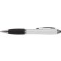 Érintős golyóstoll fekete tollbetéttel. A tetején lévő gumi segítségével érintőképernyős eszközökön használható. Emblémázás: Tamponnyomás, UV nyomtatás