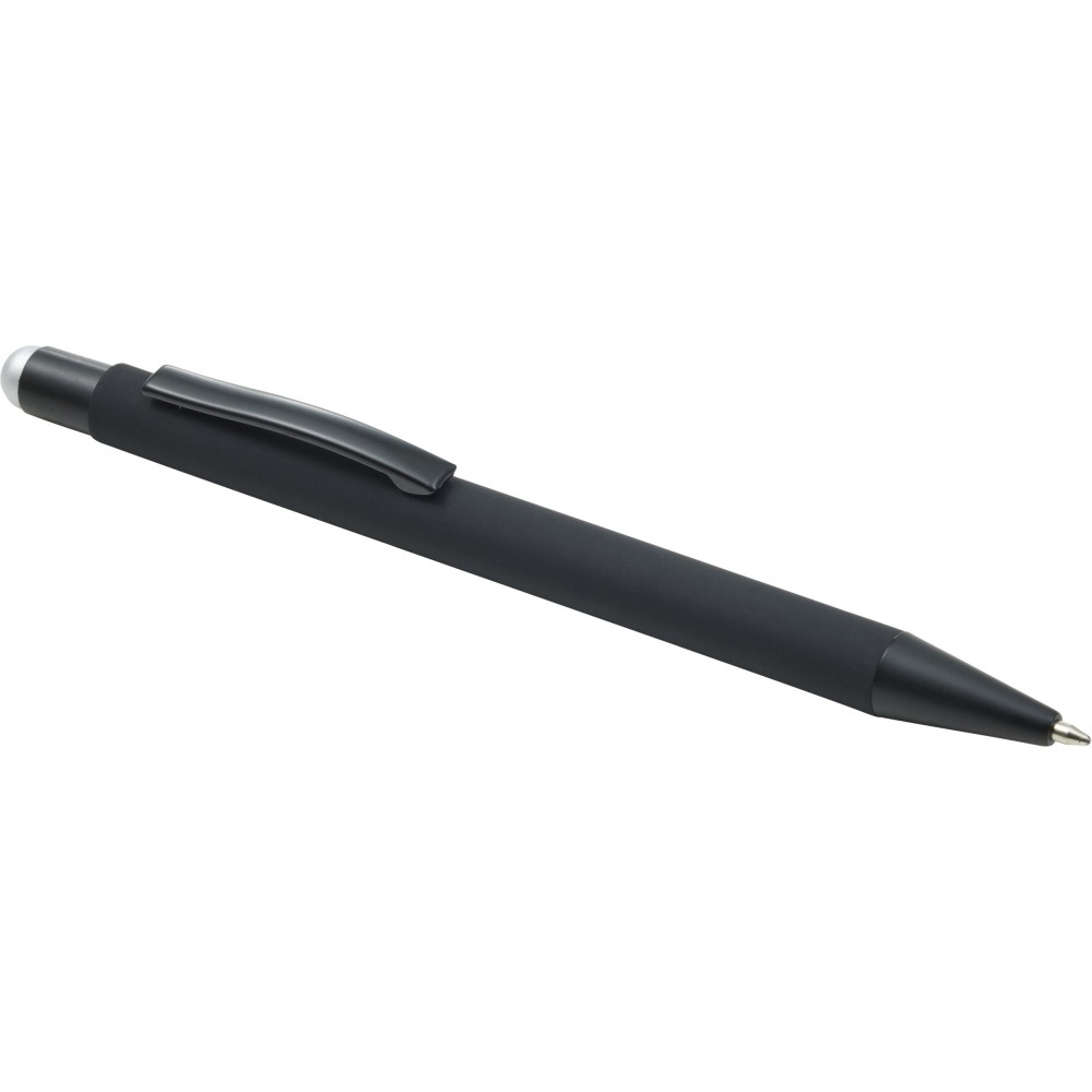 Golyóstoll színes érintővel, kék tollbetéttel és színes belső felülettel. ABS műanyag és alumínium. Emblémázás: UV nyomtatás