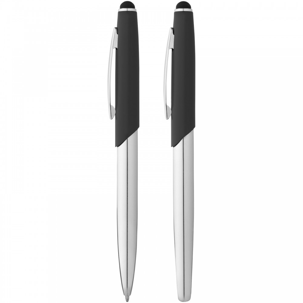 Kifinomult vonalú érintős golyóstoll és rollerball toll matt felső résszel és fényes, krómozott alsó résszel, hozzá illő krómozott díszítőelemekkel. Emblémázás: Gravírozás, Tamponnyomás