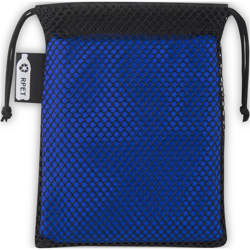Gyorsan száradó, mosható, 80 x 30 cm-es hűtőtörölköző, amely újrahasznosított PET-ből készült. A hűtőtörölközőt 15 x 11,5 cm-es, zárható tasakban szállítjuk, amely szintén újrahasznosított PET-ből készült. 5 üde színben kapható. Nagy dekorálható terület a tasakon, illetve a törölközőn. Emblémázás: Szitanyomás